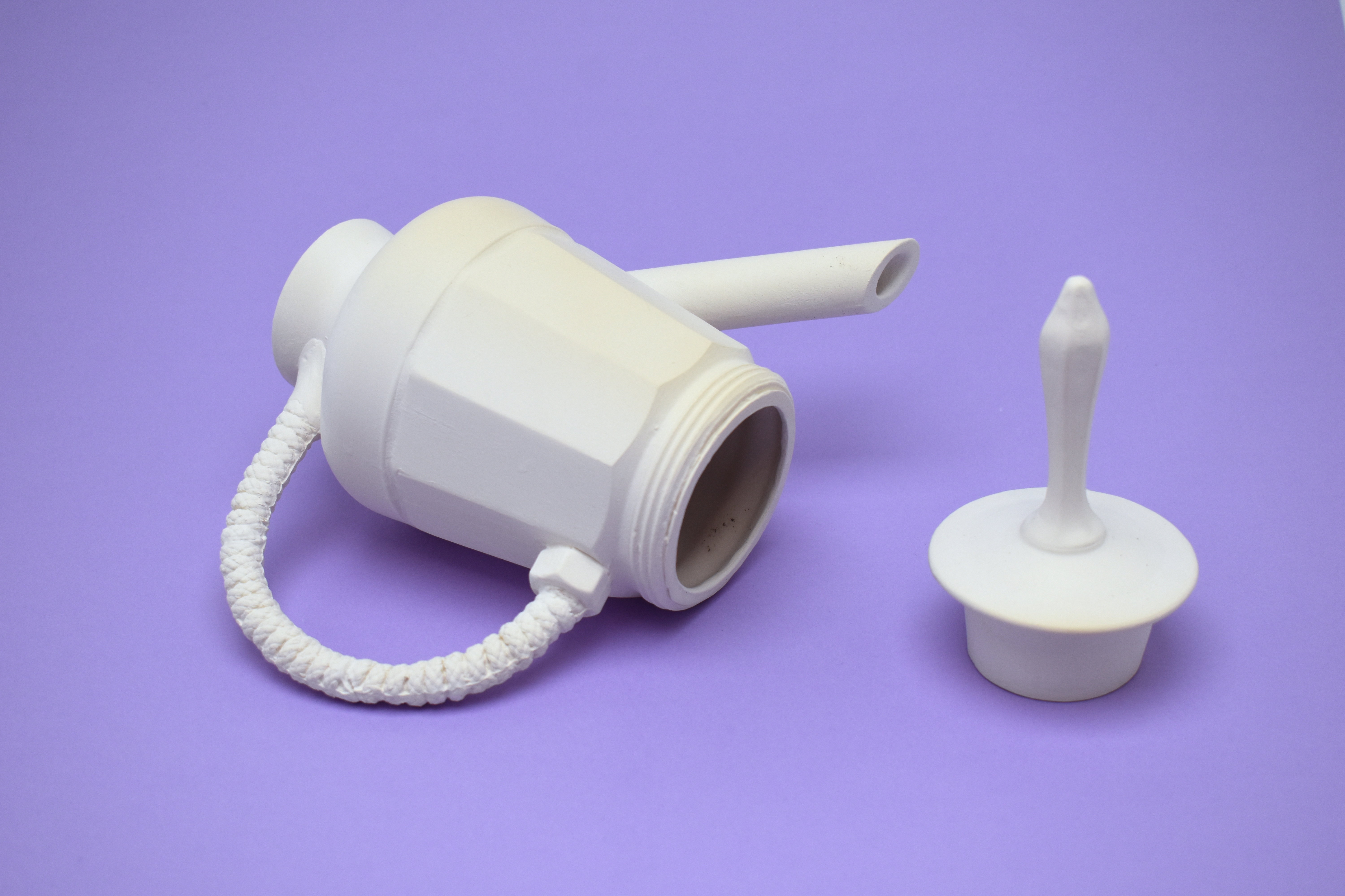 Me, Jack and Ilse repurposed malfunctioning items into a teapot. We used a foot of a glass, rope, srew nuts, an ice cream bowl, a broken moka pot, and metalwork scraps to build the spahe. Then, we made plaster moulds and slip casted functioning teapots.